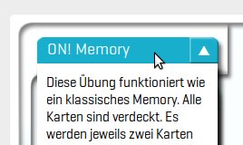 Unter dem Reiter 'ON! Memory' finden Sie eine Aufgabenbeschreibung und Informationen, wie das Memory am interaktiven Whiteboard in der Klasse zu bearbeiten ist.